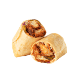Chopped chicken, CRIMSON Sauce, slaw & pickles in a tortilla